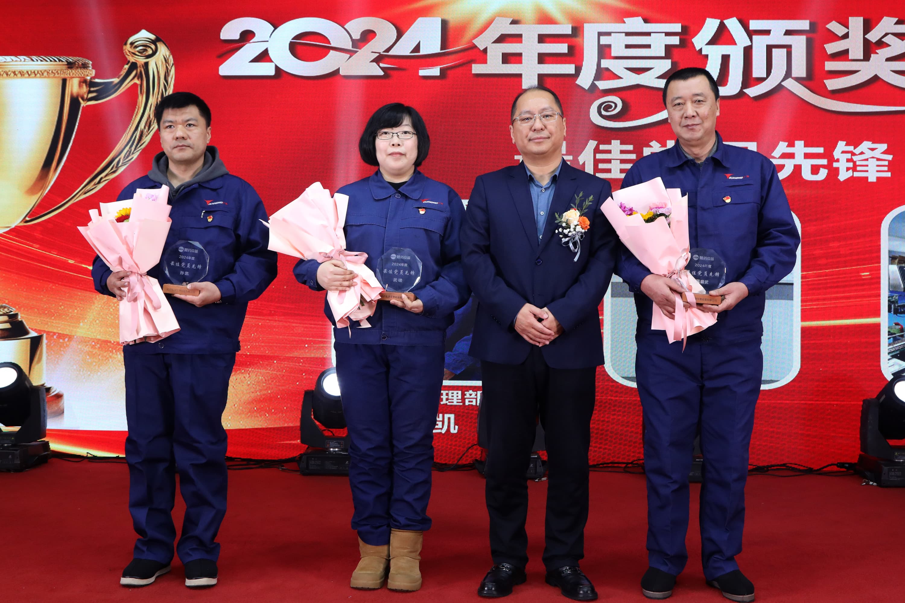 凝聚榜樣力量,榮譽激勵前行。為表彰先進、充分發(fā)揮先優(yōu)模范帶頭作用,激發(fā)廣大職工“爭先創(chuàng)優(yōu)”的積極性,公司黨委副書記、紀委書記、工會主席尤津洲在大會上宣讀表彰先優(yōu)決定,現(xiàn)場舉行隆重的頒獎儀式,高管團隊為獲獎團隊和個人頒發(fā)榮譽獎杯。